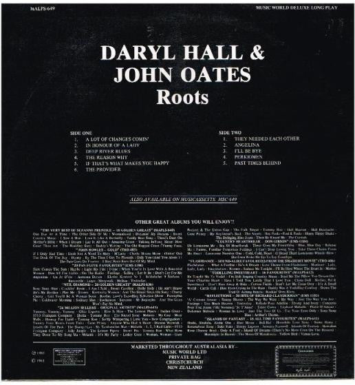 ARTIST: Daryl Hall & John Oates LABEL: Music World CAT: MALPS 649 PRESSING: NZ YEAR: 1983 RPM: 33 FORMAT: 12 DISC/S: 1 GENRE: Funk/SoulPop STYLE: Pop COVER CONDITION: NM- VINYL CONDITION: NM USED OR NEW: Secondhand