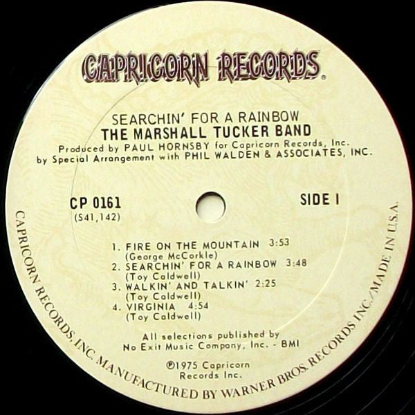 ARTIST: The Marshall Tucker Band LABEL: Capricorn Records CAT: CP 0161 PRESSING: US YEAR: 1975 RPM: 33 FORMAT: 12 DISC/S: 1 GENRE: RockSouthern Rock STYLE: Southern Rock COVER CONDITION: VG+ VINYL CONDITION: VG+ USED OR NEW: Secondhand