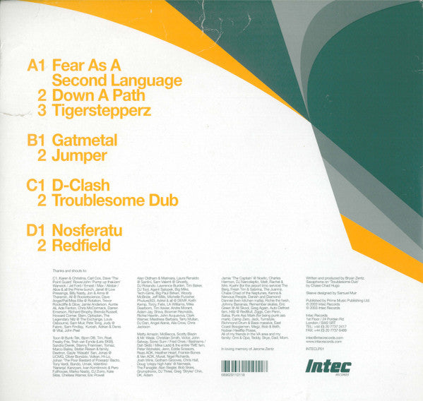 ARTIST: Bryan Zentz DLP LABEL: Intec Records CAT: INTECLP01 PRESSING: UK YEAR: 2003 RPM: 33 FORMAT: 12 DISC/S: 2 GENRE: ElectronicaTechno STYLE: Techno COVER CONDITION: NM- VINYL CONDITION: NM- / NM- USED OR NEW: Secondhand