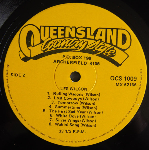 ARTIST: Les Wilson & Jean Calder LABEL: Queensland Country Style CAT: QCS 1009 PRESSING: Australia YEAR: RPM: 33 FORMAT: 12 DISC/S: 1 GENRE: Country STYLE: COVER CONDITION: VG+ VINYL CONDITION: VG++ USED OR NEW: Secondhand