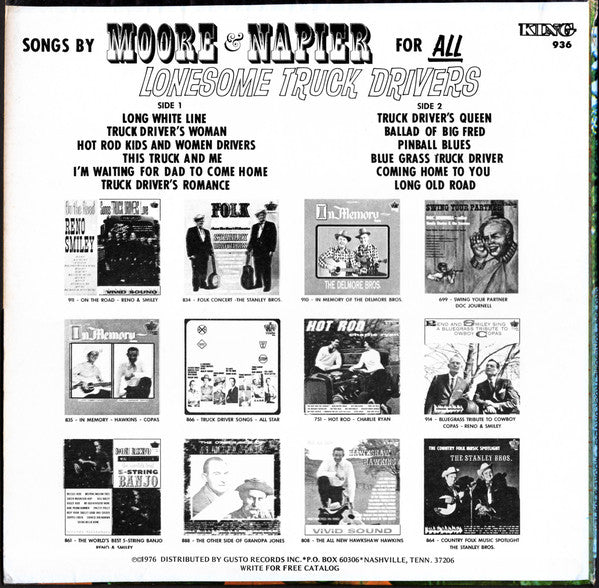 ARTIST: Moore & Napier (Sealed Copy) LABEL: King Records CAT: K-936 PRESSING: US YEAR: 0 RPM: 33 FORMAT: 12 DISC/S: 1 GENRE: BluegrassCountry STYLE: Bluegrass COVER CONDITION: NM VINYL CONDITION: M- USED OR NEW: Secondhand