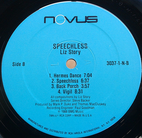ARTIST: Liz Story LABEL: Novus CAT: 3037-1-N PRESSING: US YEAR: 1988 RPM: 33 FORMAT: 12 DISC/S: 1 GENRE: CountryJazz STYLE: Country COVER CONDITION: NM VINYL CONDITION: NM USED OR NEW: Secondhand
