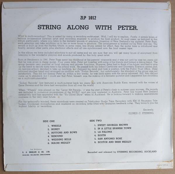 ARTIST: Peter Posa LABEL: Zodiac CAT: ZLP 1012 PRESSING: NZ YEAR: 1961 RPM: 33 FORMAT: 12 DISC/S: 1 GENRE: Pop STYLE: COVER CONDITION: VG+ VINYL CONDITION: VG USED OR NEW: Secondhand