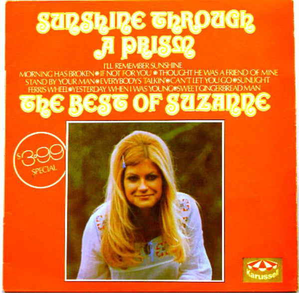 ARTIST: Suzanne LABEL: Karussell CAT: 307 PRESSING: NZ YEAR: 1972 RPM: 33 FORMAT: 12 DISC/S: 1 GENRE: Kiwi MusicPop STYLE: Kiwi Music COVER CONDITION: VG+ VINYL CONDITION: VG- USED OR NEW: Secondhand