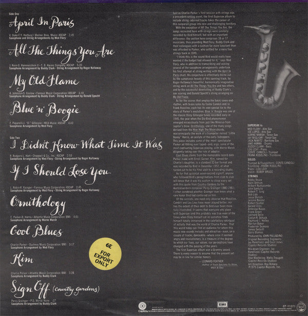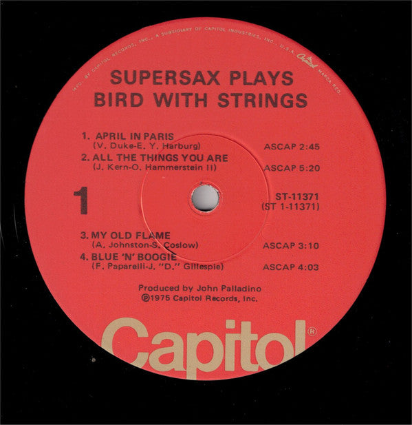 ARTIST: Supersax LABEL: Capitol CAT: ST-11371 PRESSING: US YEAR: 1975 RPM: 33 FORMAT: 12 DISC/S: 1 GENRE: Jazz STYLE: 0 COVER CONDITION: VG+ VINYL CONDITION: NM USED OR NEW: Secondhand
