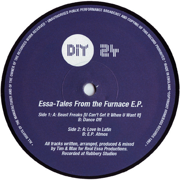 ARTIST: Essa LABEL: DIY Discs CAT: DIY24 PRESSING: UK YEAR: 1997 RPM: 33 FORMAT: 12 DISC/S: 1 GENRE: Deep HouseElectronica STYLE: Deep House COVER CONDITION: VG+ VINYL CONDITION: NM- USED OR NEW: New