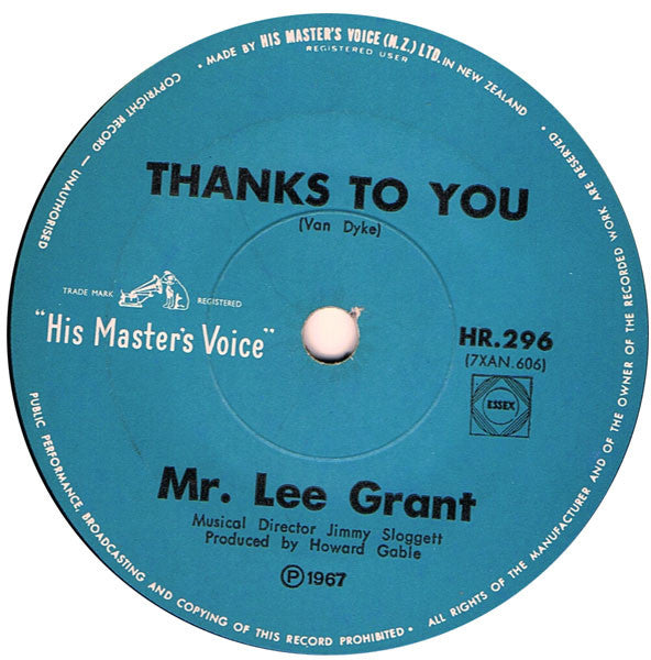 ARTIST: Mr Lee Grant LABEL: His Masters Voice CAT: HR.296 PRESSING: NZ YEAR: 1967 RPM: 45 FORMAT: 7 DISC/S: 1 GENRE: PopSoul STYLE: Soul COVER CONDITION: G VINYL CONDITION: VG+ USED OR NEW: Secondhand