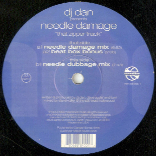 ARTIST: DJ Dan Presents Needle Damage LABEL: Moonshine Music CAT: MM 88455-1 PRESSING: US YEAR: 1999 RPM: 33 FORMAT: 12 DISC/S: 1 GENRE: ElectronicaHouse STYLE: House COVER CONDITION: VG+ VINYL CONDITION: VG+ USED OR NEW: Secondhand