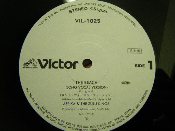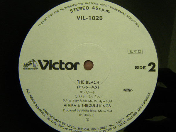 ARTIST: Afrika And The Zulu Kings LABEL: Victor CAT: VIL 1025 PRESSING: Japan YEAR: 1988 RPM: 45 FORMAT: 12 DISC/S: 1 GENRE: ElectroHip Hop STYLE: Electro COVER CONDITION: VG++ VINYL CONDITION: NM USED OR NEW: Secondhand