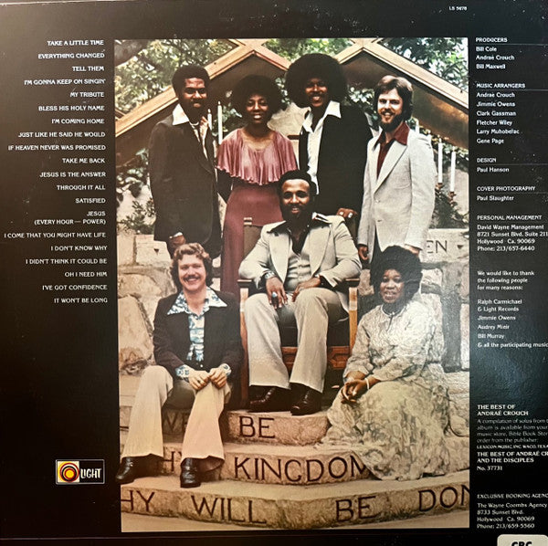 ARTIST: Andrae Crouch And The Disciples DLP LABEL: Light Records CAT: LS 5678 PRESSING: US YEAR: 1975 RPM: 33 FORMAT: 12 DISC/S: 2 GENRE: Funk/SoulGospel STYLE: Gospel COVER CONDITION: VG+ VINYL CONDITION: VG+ / VG+ USED OR NEW: Secondhand