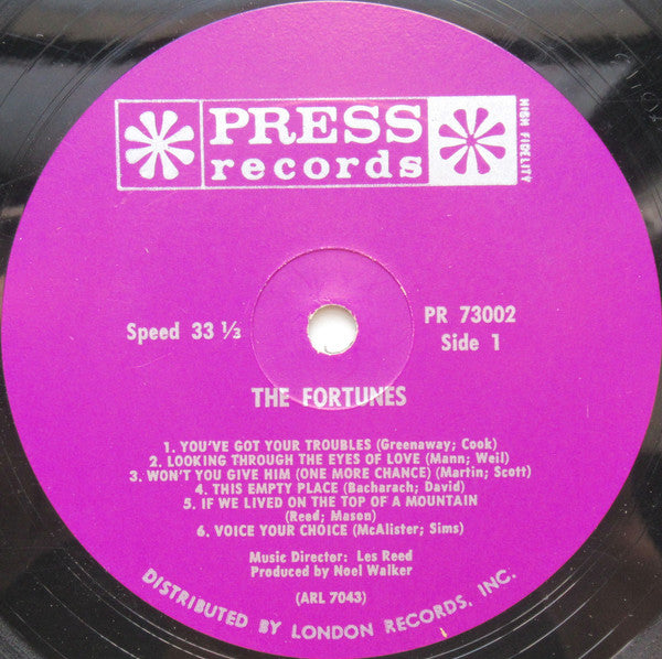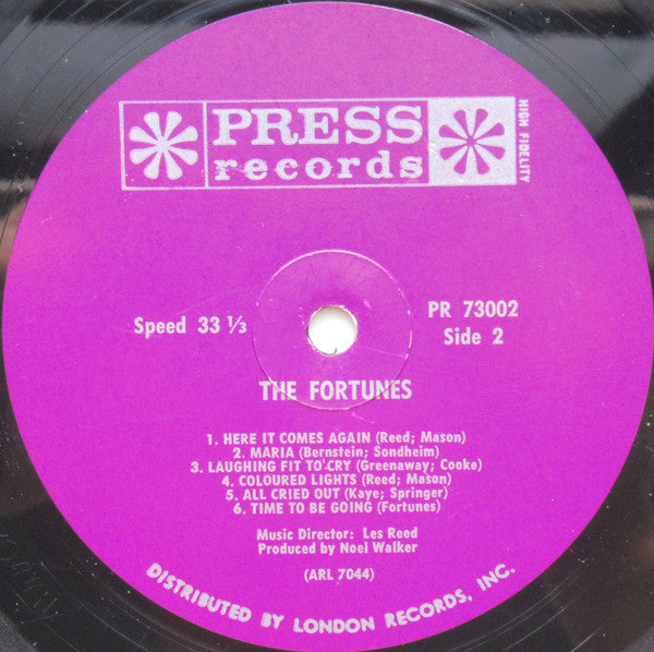ARTIST: The Fortunes LABEL: Press Records CAT: PR 73002 PRESSING: US YEAR: 1965 RPM: 33 FORMAT: 12 DISC/S: 1 GENRE: PopRock STYLE: Pop COVER CONDITION: VG+ VINYL CONDITION: VG++ USED OR NEW: Secondhand