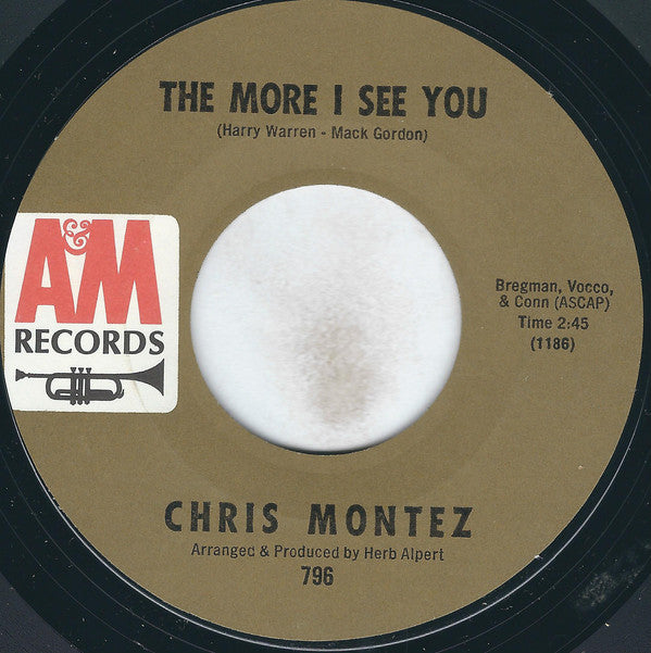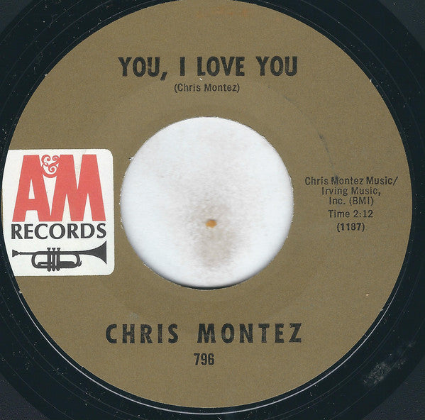 ARTIST: Chris Montez LABEL: A & M Records CAT: 796 PRESSING: US YEAR: 1966 RPM: 45 FORMAT: 7 DISC/S: 1 GENRE: Jazz STYLE: COVER CONDITION: Generic VINYL CONDITION: VG- USED OR NEW: Secondhand