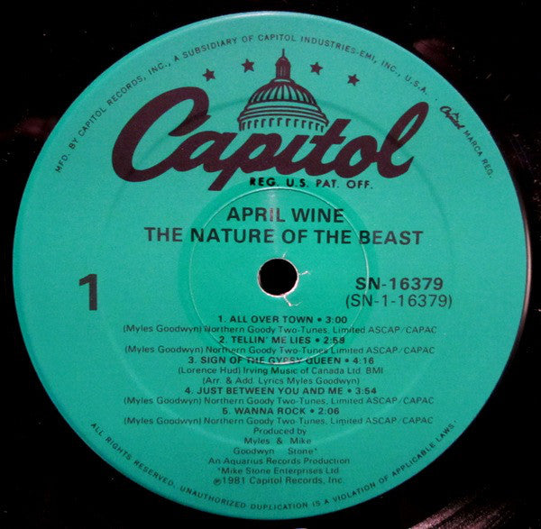 ARTIST: April Wine LABEL: Capitol Records CAT: SN-16379 PRESSING: US YEAR: RPM: 33 FORMAT: 12 DISC/S: 1 GENRE: Hard RockRock STYLE: Hard Rock COVER CONDITION: VG+ VINYL CONDITION: VG+ USED OR NEW: Secondhand