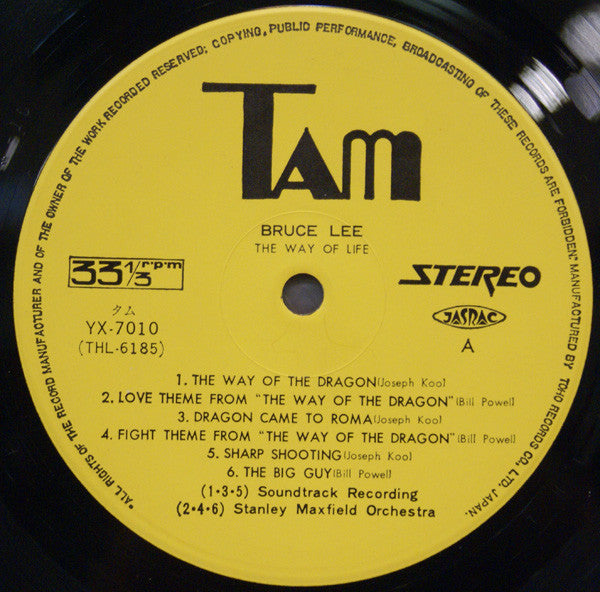 ARTIST: Bruce Lee LABEL: Tam CAT: YX-7010 PRESSING: Japan YEAR: 1972 RPM: 33 FORMAT: 12 DISC/S: 1 GENRE: Funk/SoulSoul STYLE: 0 COVER CONDITION: VG+ VINYL CONDITION: VG+ USED OR NEW: Secondhand