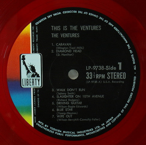 Gold embossed gatefold sleeve. Translucent red vinyl.
