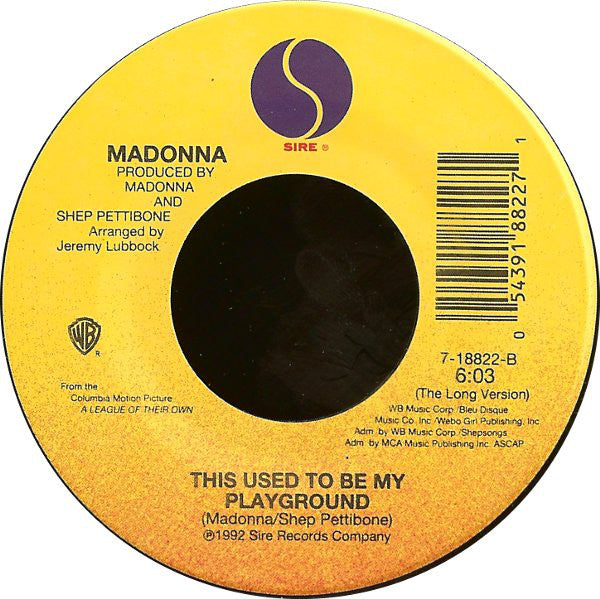 ARTIST: Madonna LABEL: Sire CAT: 7-18822 PRESSING: US YEAR: 1992 RPM: 45 FORMAT: 7 DISC/S: 1 GENRE: ElectronicaSynth Pop STYLE: Synth Pop COVER CONDITION: Generic VINYL CONDITION: NM USED OR NEW: Secondhand