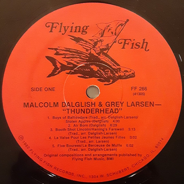 ARTIST: Malcolm Dalglish & Grey Larsen LABEL: Flying Fish CAT: FF 266 PRESSING: US YEAR: 1982 RPM: 33 FORMAT: 12 DISC/S: 1 GENRE: Folk STYLE: 0 COVER CONDITION: NM VINYL CONDITION: VG+ USED OR NEW: Secondhand