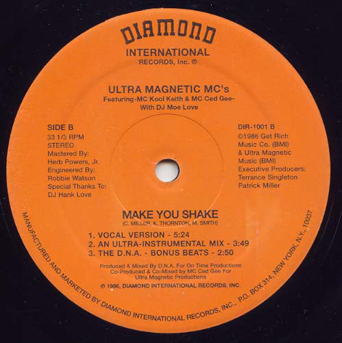 ARTIST: Ultramagnetci MC's LABEL: Diamond International CAT: DIR-1001 PRESSING: US YEAR: 1999 RPM: 33 FORMAT: 12 DISC/S: 1 GENRE: Hip Hop STYLE: COVER CONDITION: Generic VINYL CONDITION: NM USED OR NEW: Secondhand