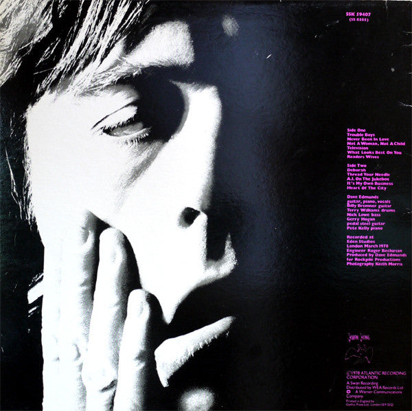 ARTIST: Dave Edmunds LABEL: Swan Song CAT: SSK 59407 PRESSING: UK YEAR: 1978 RPM: 33 FORMAT: 12 DISC/S: 1 GENRE: Blues RockRock STYLE: Blues Rock COVER CONDITION: VG+ VINYL CONDITION: NM USED OR NEW: Secondhand