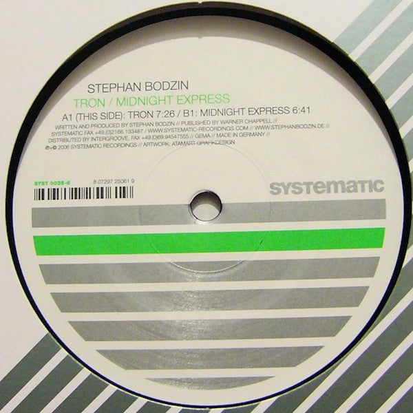 ARTIST: Stefan Bodzin LABEL: Systematic CAT: SYST 0025-6 PRESSING: Germany YEAR: 2006 RPM: 45 FORMAT: 12 DISC/S: 1 GENRE: ElectronicaTech House STYLE: Tech House COVER CONDITION: Generic VINYL CONDITION: VG+ USED OR NEW: Secondhand