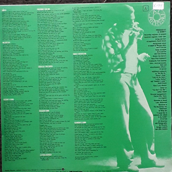 ARTIST: Al Jarreau LABEL: Reprise Records CAT: MS 2224 PRESSING: NZ YEAR: 1975 RPM: 33 FORMAT: 12 DISC/S: 1 GENRE: Funk/SoulJazz STYLE: Jazz COVER CONDITION: VG+ VINYL CONDITION: VG+ USED OR NEW: Secondhand