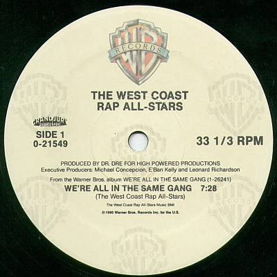 ARTIST: The West Coast Rap All-Stars LABEL: Warner Bros CAT: 0-21549 PRESSING: US YEAR: 1990 RPM: 33 FORMAT: 12 DISC/S: 1 GENRE: Hip Hop STYLE: COVER CONDITION: VG+ VINYL CONDITION: VG+ USED OR NEW: Secondhand