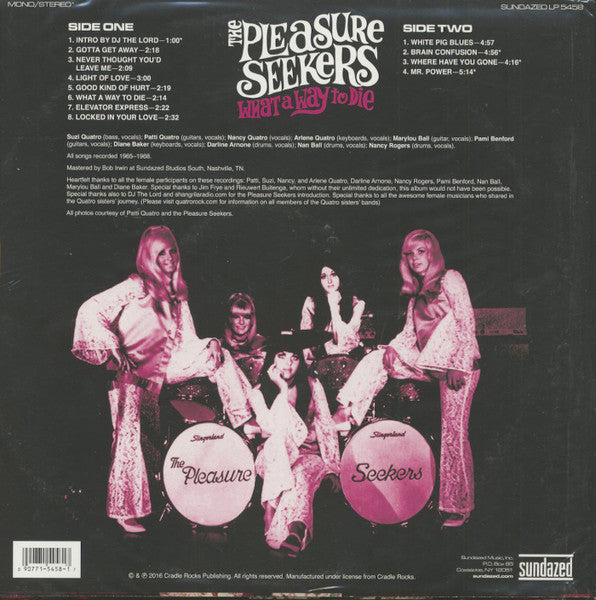 ARTIST: The Pleasure Seekers (White Vinyl) LABEL: Sundazed Music CAT: LP 5458 PRESSING: US YEAR: 2018 RPM: 33 FORMAT: 12 DISC/S: 1 GENRE: Garage RockRock STYLE: Garage Rock COVER CONDITION: M- VINYL CONDITION: M- USED OR NEW: Secondhand