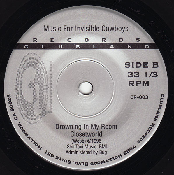 ARTIST: Invisible Cowboys LABEL: Clubland Records CAT: CR-003 PRESSING: US YEAR: 1996 RPM: 45 FORMAT: 7 DISC/S: 1 GENRE: Rock STYLE: 0 COVER CONDITION: Generic VINYL CONDITION: VG USED OR NEW: Secondhand