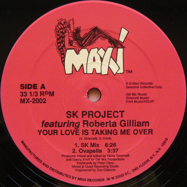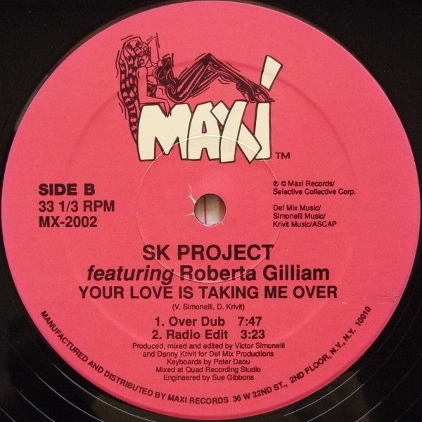 ARTIST: SK Project LABEL: Maxi Records CAT: MX-2002 PRESSING: US YEAR: 1990 RPM: 33 FORMAT: 12 DISC/S: 1 GENRE: ElectronicaHouse STYLE: House COVER CONDITION: Generic VINYL CONDITION: VG+ USED OR NEW: Secondhand