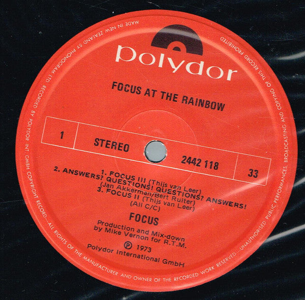 ARTIST: Focus LABEL: Polydor CAT: 2442 118 PRESSING: NZ YEAR: 1973 RPM: 33 FORMAT: 12 DISC/S: 1 GENRE: Progressive RockRock STYLE: Progressive Rock COVER CONDITION: VG VINYL CONDITION: VG++ USED OR NEW: Secondhand