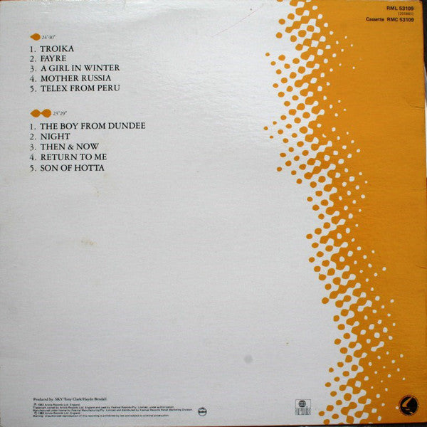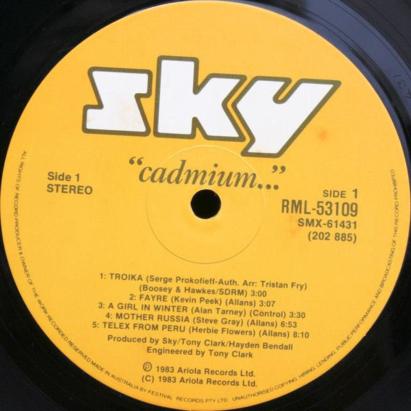 ARTIST: Sky LABEL: Ariola CAT: RML 53109 PRESSING: Australia YEAR: 1984 RPM: 33 FORMAT: 12 DISC/S: 1 GENRE: Progressive RockRock STYLE: Progressive Rock COVER CONDITION: VG+ VINYL CONDITION: NM USED OR NEW: Secondhand