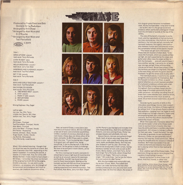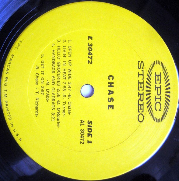 ARTIST: Chase LABEL: Epic CAT: E 30472 PRESSING: US YEAR: 1971 RPM: 33 FORMAT: 12 DISC/S: 1 GENRE: Rock STYLE: COVER CONDITION: NM VINYL CONDITION: NM- USED OR NEW: Secondhand