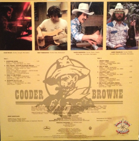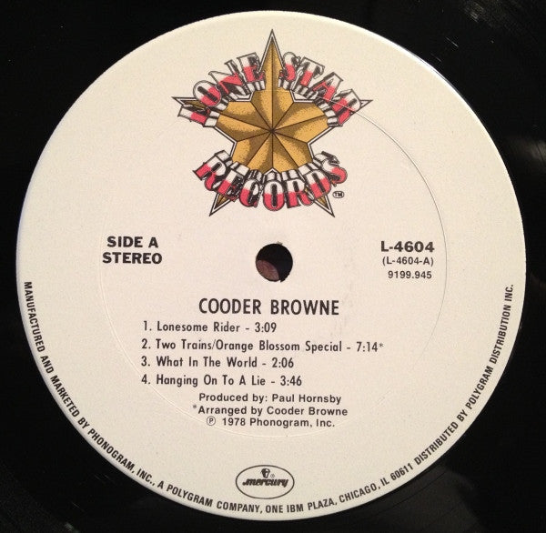 ARTIST: Cooder Browne LABEL: Lone Star Records CAT: L-4604 PRESSING: US YEAR: 1978 RPM: 33 FORMAT: 12 DISC/S: 1 GENRE: RockSouthern Rock STYLE: Southern Rock COVER CONDITION: VG+ VINYL CONDITION: NM USED OR NEW: Secondhand