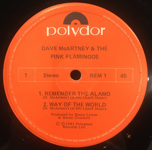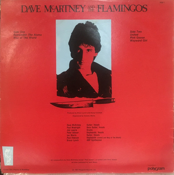 ARTIST: Dave McArtney And The Flamingos LABEL: Polydor CAT: REM 1 PRESSING: NZ YEAR: 1981 RPM: 33 FORMAT: 12 DISC/S: 1 GENRE: AlternativeRock STYLE: Alternative COVER CONDITION: VG VINYL CONDITION: VG USED OR NEW: Secondhand