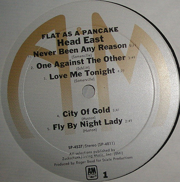 ARTIST: Head East LABEL: A & M Records CAT: SP-4537 PRESSING: US YEAR: 1975 RPM: 33 FORMAT: 12 DISC/S: 1 GENRE: Rock STYLE: 0 COVER CONDITION: VG+ VINYL CONDITION: VG+ USED OR NEW: Secondhand