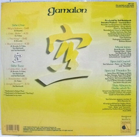 ARTIST: Gamalon LABEL: Amehurst Records CAT: AMH 3318 PRESSING: US YEAR: 1987 RPM: 33 FORMAT: 12 DISC/S: 1 GENRE: Progressive RockRock STYLE: Progressive Rock COVER CONDITION: NM VINYL CONDITION: NM USED OR NEW: Secondhand