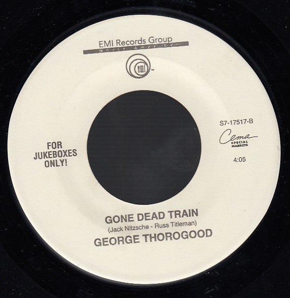 ARTIST: George Thorogood LABEL: EMI CAT: S7-17517 PRESSING: US YEAR: 1993 RPM: 45 FORMAT: 7 DISC/S: 1 GENRE: Blues RockRock STYLE: Blues Rock COVER CONDITION: Generic VINYL CONDITION: VG+ USED OR NEW: Secondhand