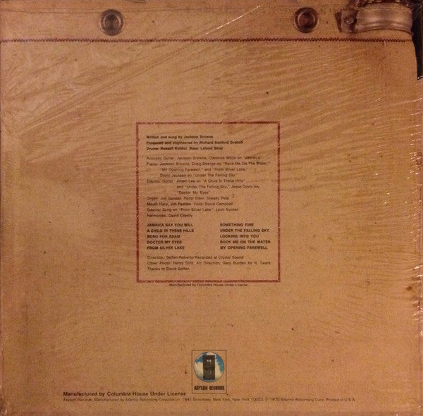 ARTIST: Jackson Browne LABEL: Asylum CAT: SD 5051 PRESSING: US YEAR: 1972 RPM: 33 FORMAT: 12 DISC/S: 1 GENRE: Rock STYLE: COVER CONDITION: NM- VINYL CONDITION: NM USED OR NEW: Secondhand