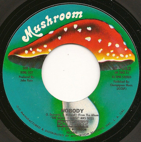 ARTIST: Doucette LABEL: Mushroom Records CAT: M-7042 PRESSING: US YEAR: 1979 RPM: 45 FORMAT: 7 DISC/S: 1 GENRE: PopRock STYLE: Pop COVER CONDITION: Generic VINYL CONDITION: VG+ USED OR NEW: Secondhand