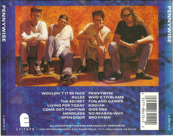 ARTIST: Pennywise CD LABEL: Epitaph CAT: E-86412-2 PRESSING: US YEAR: 1992 RPM: 0 FORMAT: CD DISC/S: 1 GENRE: PunkRock STYLE: Punk COVER CONDITION: Generic VINYL CONDITION: VG USED OR NEW: Secondhand