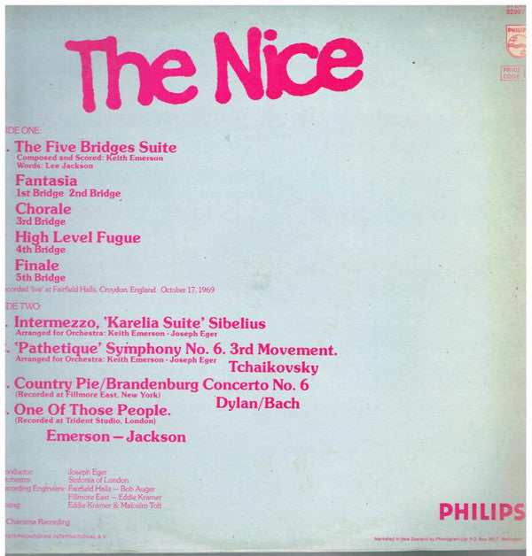 ARTIST: The Nice LABEL: Phillips CAT: 6299 718 PRESSING: NZ YEAR: 0 RPM: 33 FORMAT: 12 DISC/S: 1 GENRE: Progressive RockRock STYLE: Progressive Rock COVER CONDITION: G- VINYL CONDITION: G+ USED OR NEW: Secondhand