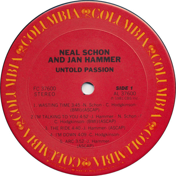 ARTIST: Neal Schon & Jan Hammer LABEL: Columbia CAT: FC 37600 PRESSING: US YEAR: 1981 RPM: 33 FORMAT: 12 DISC/S: 1 GENRE: Progressive RockRock STYLE: Progressive Rock COVER CONDITION: VG VINYL CONDITION: NM- USED OR NEW: Secondhand