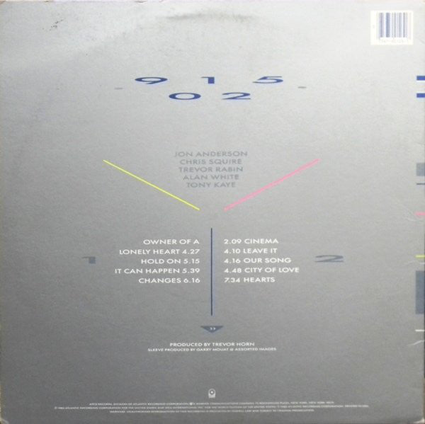 ARTIST: Yes LABEL: ATCO Records CAT: 90125-1 PRESSING: US YEAR: 1983 RPM: 33 FORMAT: 12 DISC/S: 1 GENRE: Rock STYLE: COVER CONDITION: VG+ VINYL CONDITION: NM- USED OR NEW: Secondhand