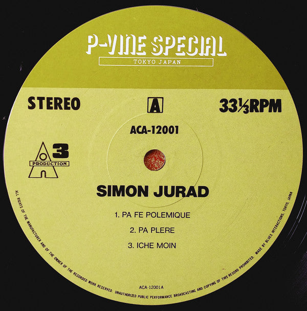 ARTIST: Simon Jurad And Operation 78 LABEL: P-Vine Special CAT: ACA-12001 PRESSING: Japan YEAR: 0 RPM: 33 FORMAT: 12 DISC/S: 1 GENRE: Latin STYLE: 0 COVER CONDITION: VG+ VINYL CONDITION: VG+ USED OR NEW: Secondhand