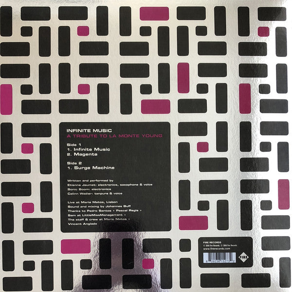 ARTIST: Infinite Music LABEL: Fire Records CAT: FIRELP527 PRESSING: UK YEAR: 2018 RPM: 33 FORMAT: 12 DISC/S: 1 GENRE: ElectronicaMinimal STYLE: Minimal COVER CONDITION: NM VINYL CONDITION: NM USED OR NEW: Secondhand