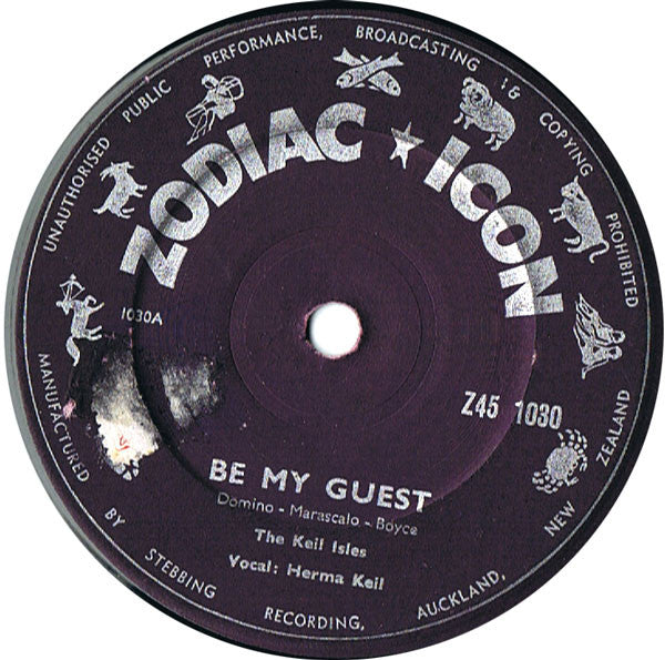 ARTIST: The Keil Isles LABEL: Zodiac CAT: Z45 1030 PRESSING: NZ YEAR: 1960 RPM: 45 FORMAT: 7 DISC/S: 1 GENRE: RockRock n Roll STYLE: Rock n Roll COVER CONDITION: Generic VINYL CONDITION: G USED OR NEW: Secondhand