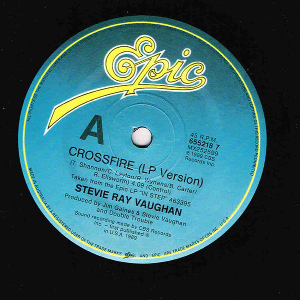 ARTIST: Stevie Ray Vaughan LABEL: Epic CAT: 655218 7 PRESSING: Australia YEAR: 1989 RPM: 45 FORMAT: 7 DISC/S: 1 GENRE: BluesTexas Blues STYLE: Texas Blues COVER CONDITION: Generic VINYL CONDITION: VG USED OR NEW: Secondhand