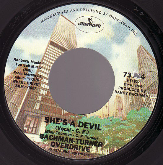 ARTIST: Bachman-Turner Overdrive LABEL: Mercury CAT: 2-52215 PRESSING: US YEAR: 1975 RPM: 45 FORMAT: 7 DISC/S: 1 GENRE: Blues RockRock STYLE: Blues Rock COVER CONDITION: Generic VINYL CONDITION: VG USED OR NEW: Secondhand