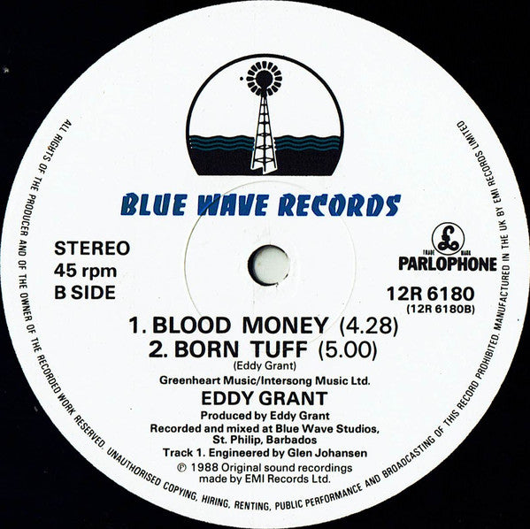ARTIST: Eddy Grant LABEL: Blue Wave Records CAT: R6180 PRESSING: UK YEAR: 1988 RPM: 45 FORMAT: 7 DISC/S: 1 GENRE: Reggae STYLE: 0 COVER CONDITION: Generic VINYL CONDITION: NM USED OR NEW: Secondhand